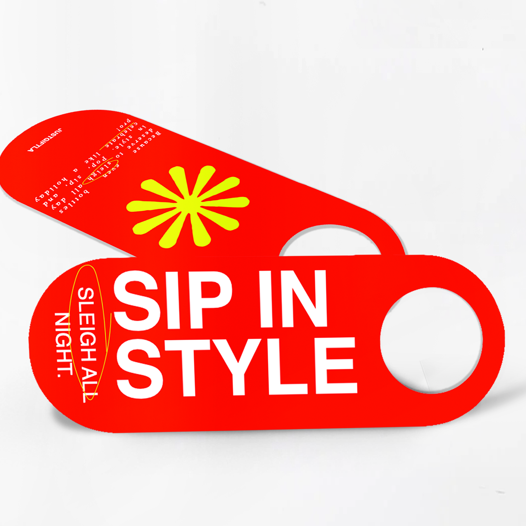 A bold, sassy wine tag that says it all! “Sip in Style” is your mantra for every holiday toast. Double it as a door charm for that extra festive flair!